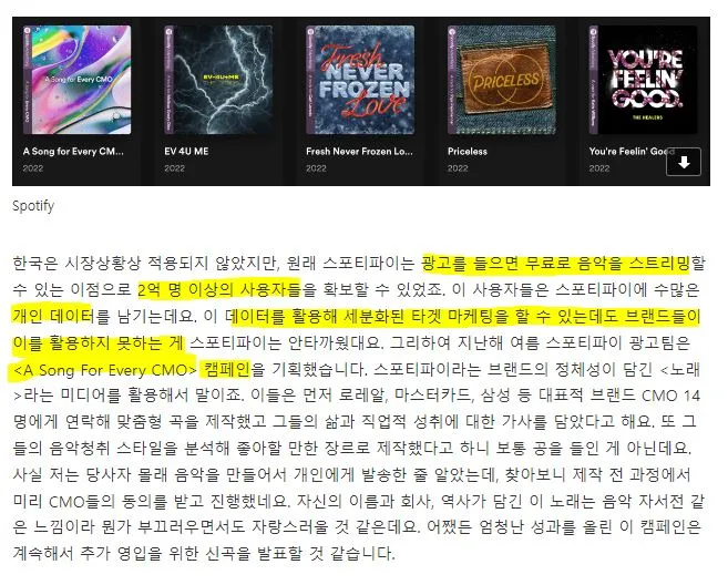 The potential for targeted marketing using customers’ personal music listening data seems absolutely immense, and for me, as someone who loves music, ideas are just bubbling up .