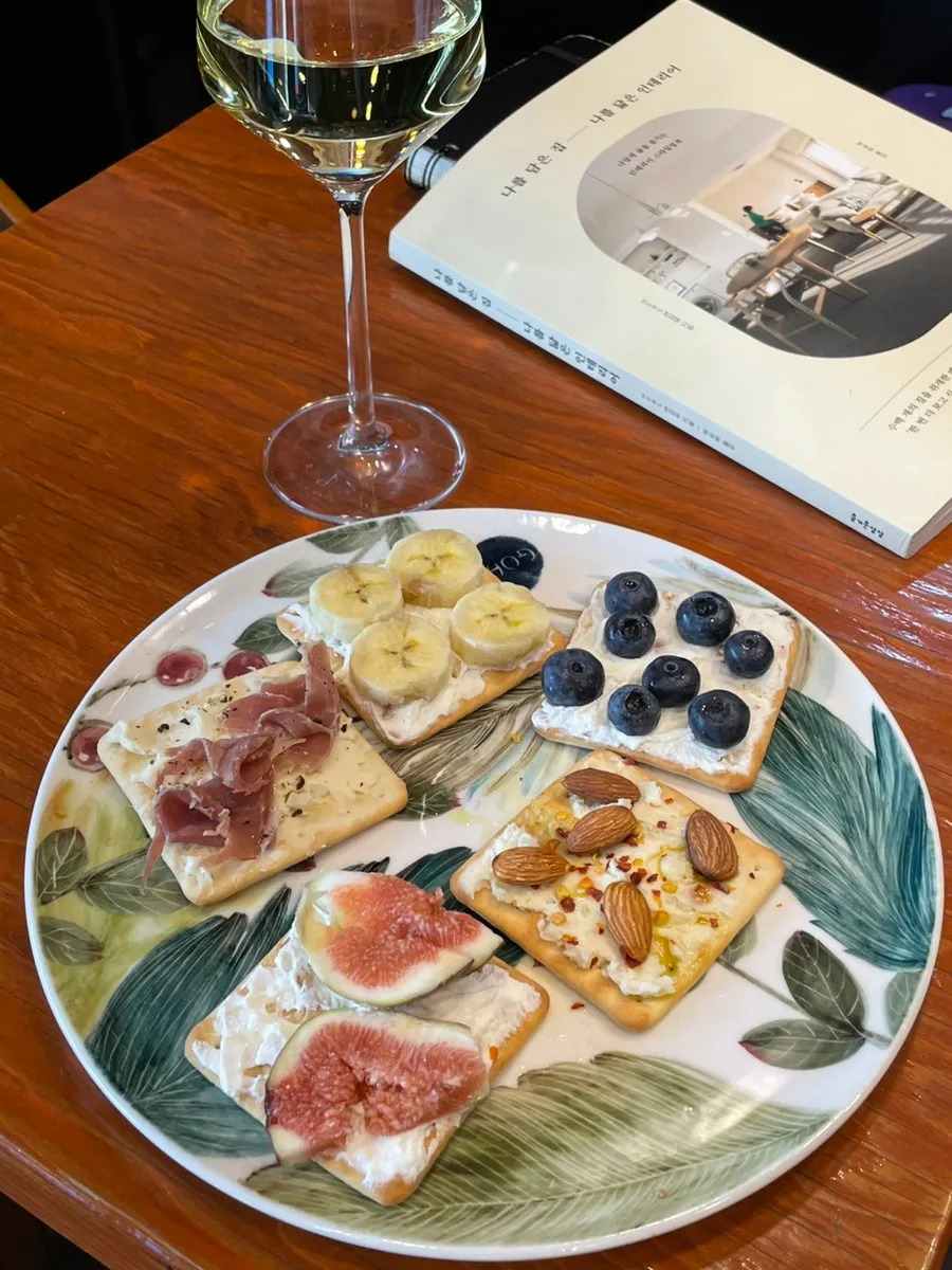 During the Chuseok holiday, I quickly whipped up some canapƩ snacks, and took a glass of white wine to Mom. Haha.