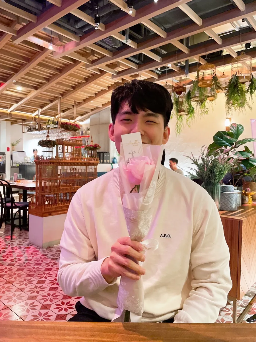 He said he was going to the restroom, and then handed me a rose when he came back 🌷