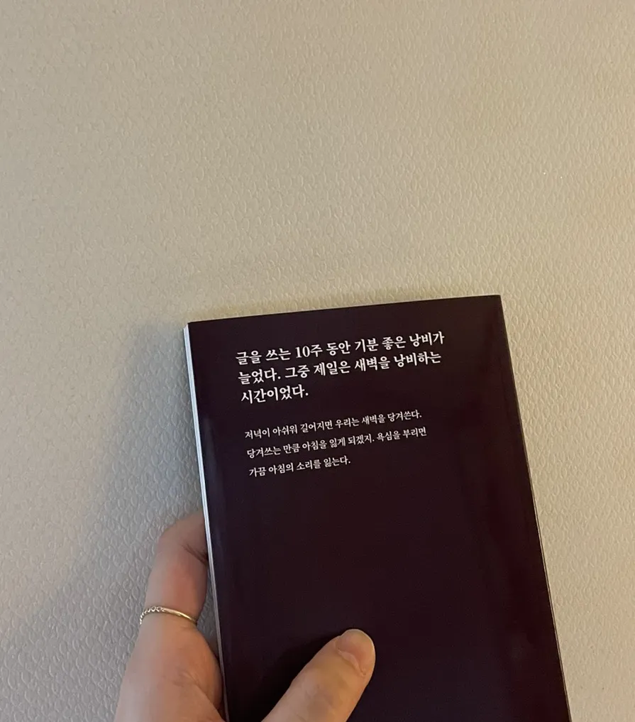Sometimes there are unexpected gifts. Unexpected gifts are always pleasant, but among them, the one that excites me the most is a book. This adorable mini-sized essay collection’s title alone is a free pass to romance. ‘Time to drink in the dawn’ – short, trivial, diary-like writings often leave a much deeper impression than difficult and abstruse sentences. I, too, join the author in truly savoring the joy of writing and indulging in a delightful waste of time!