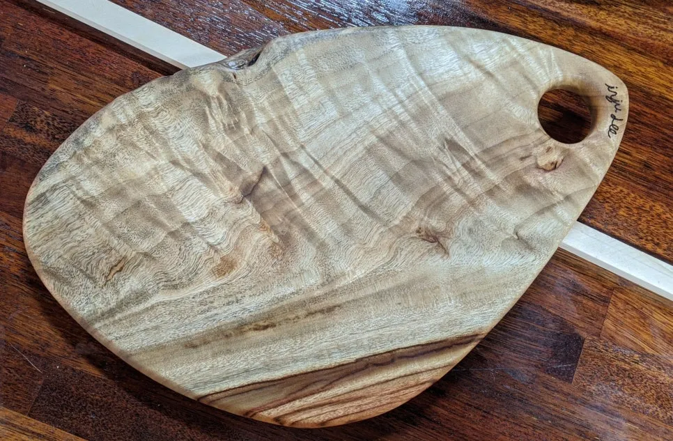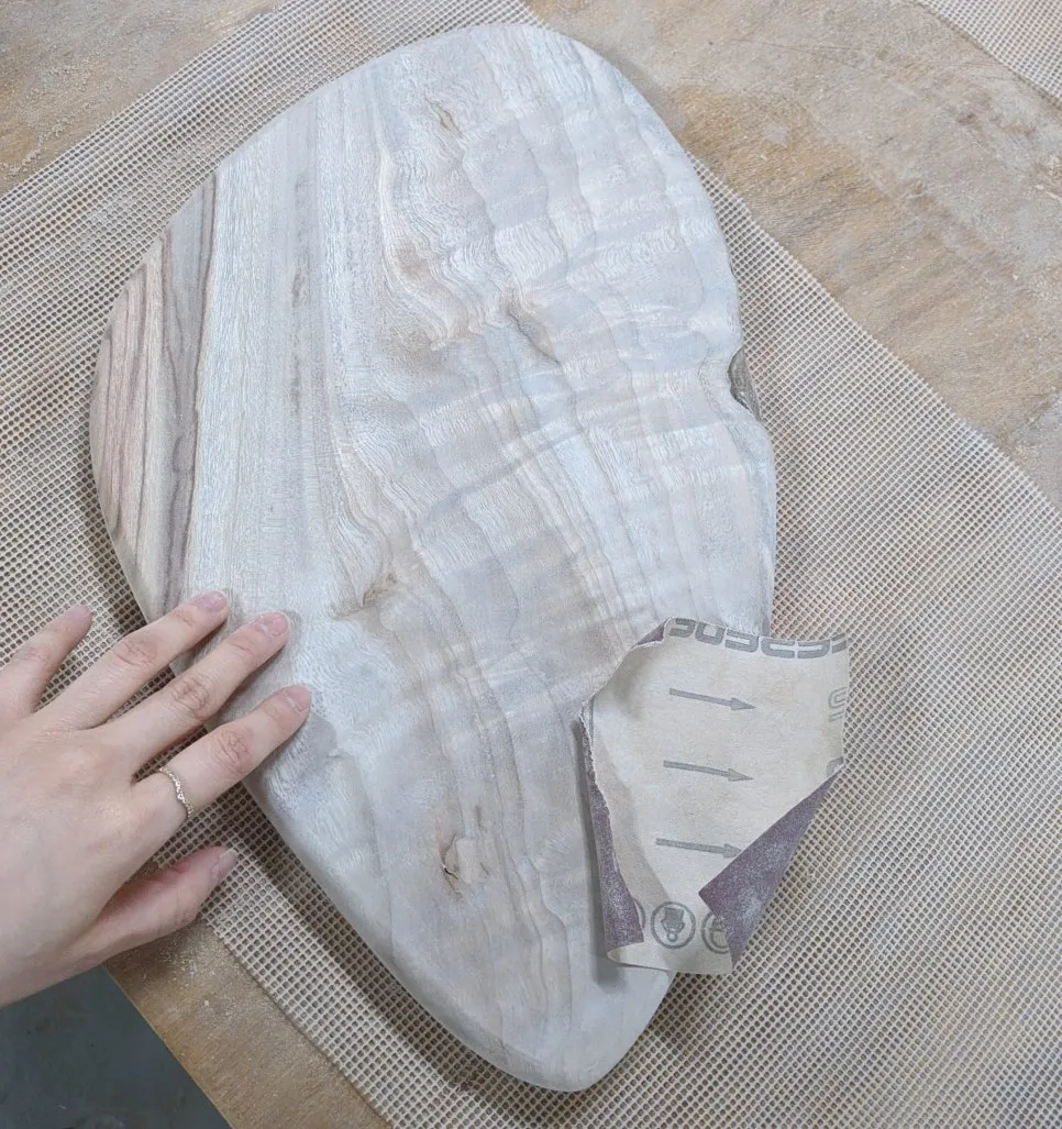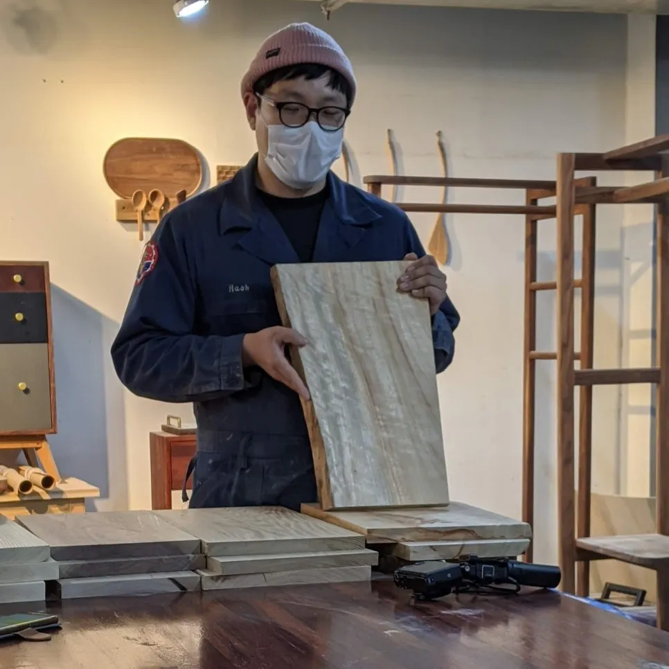 The day I came to make a cutting board, something I’d really wanted to try, I chose camphor wood, which smells like minty phytoncides. And then, after cutting and sanding it, my cutting board was complete!
