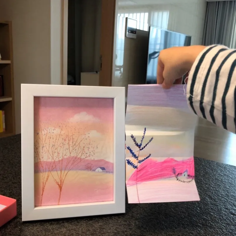 I got a call from my former Manager, who left the company a long time ago. The Manager, who is like a rabbit, has a cute daughter who is also like a rabbit. The little rabbit girl loves the painting I gave as a farewell gift ㅎ.ㅎ I received a happy KakaoTalk message saying the little rabbit girl copied it. Hehe. Looking at it again, it’s just too cute and makes me happy!