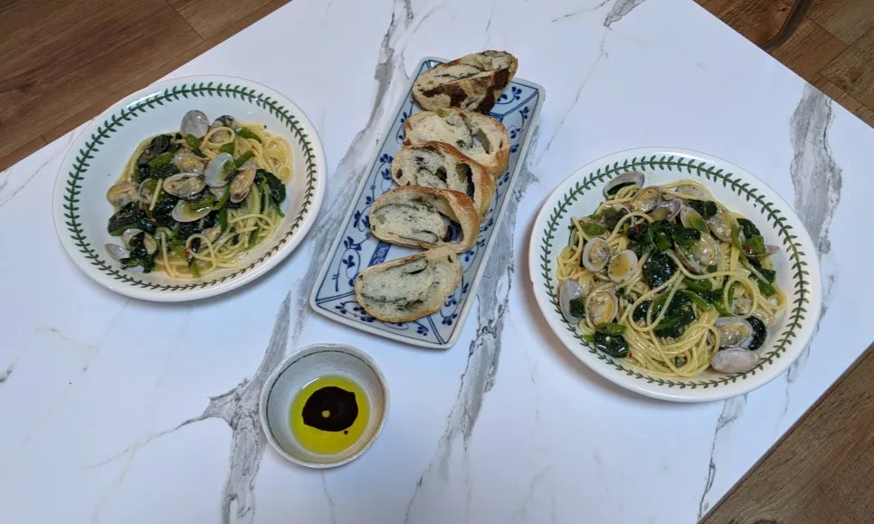 Among the days of always cooking at home while working remotely, the day I made pasta. My own recipe: spinach vongole pasta.