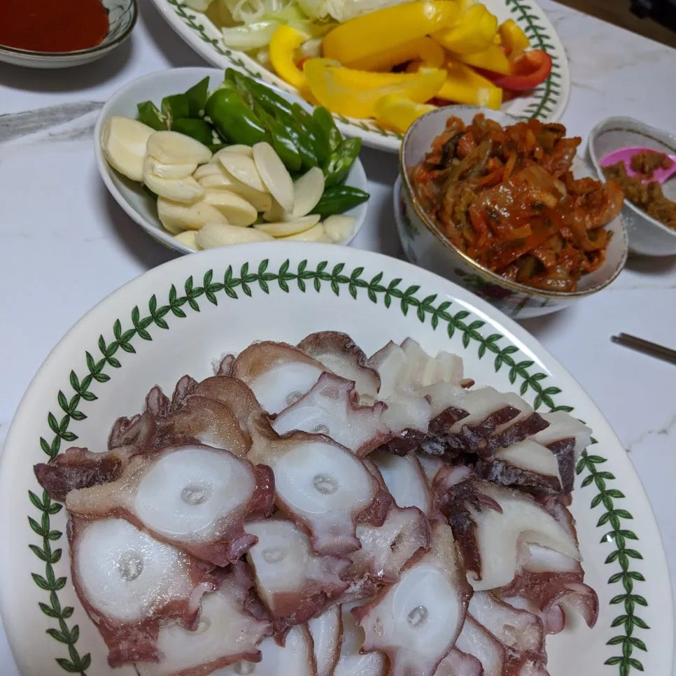 My aunt sent me octopus. Such precious octopus, which is really hard to find and expensive these days!!! A huge octopus; Mom chopped it up and stored it in the freezer. In winter, you absolutely must eat gwamegi and octopus. Life is richer when you eat seasonal food.