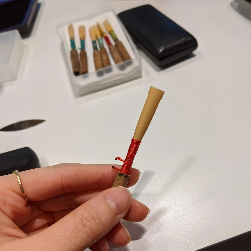 Making an oboe reed, one of my goals for this year, I finally had my first lesson. The reed is about three-quarters done, and as expected, it’s not easy… But this year, I will definitely!! play with a reed that I made and carved myself, from start to finish!