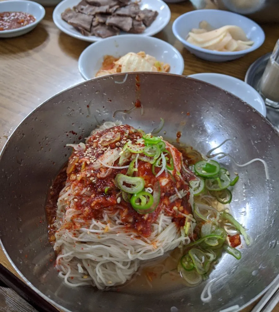 On Labor Day, a date with Dad and Seonghwan. We each had a bowl of naengmyeon at Euljimyeonok. Since I’m not a big fan of cold food, I always prefer bibim-naengmyeon over mul-naengmyeon.