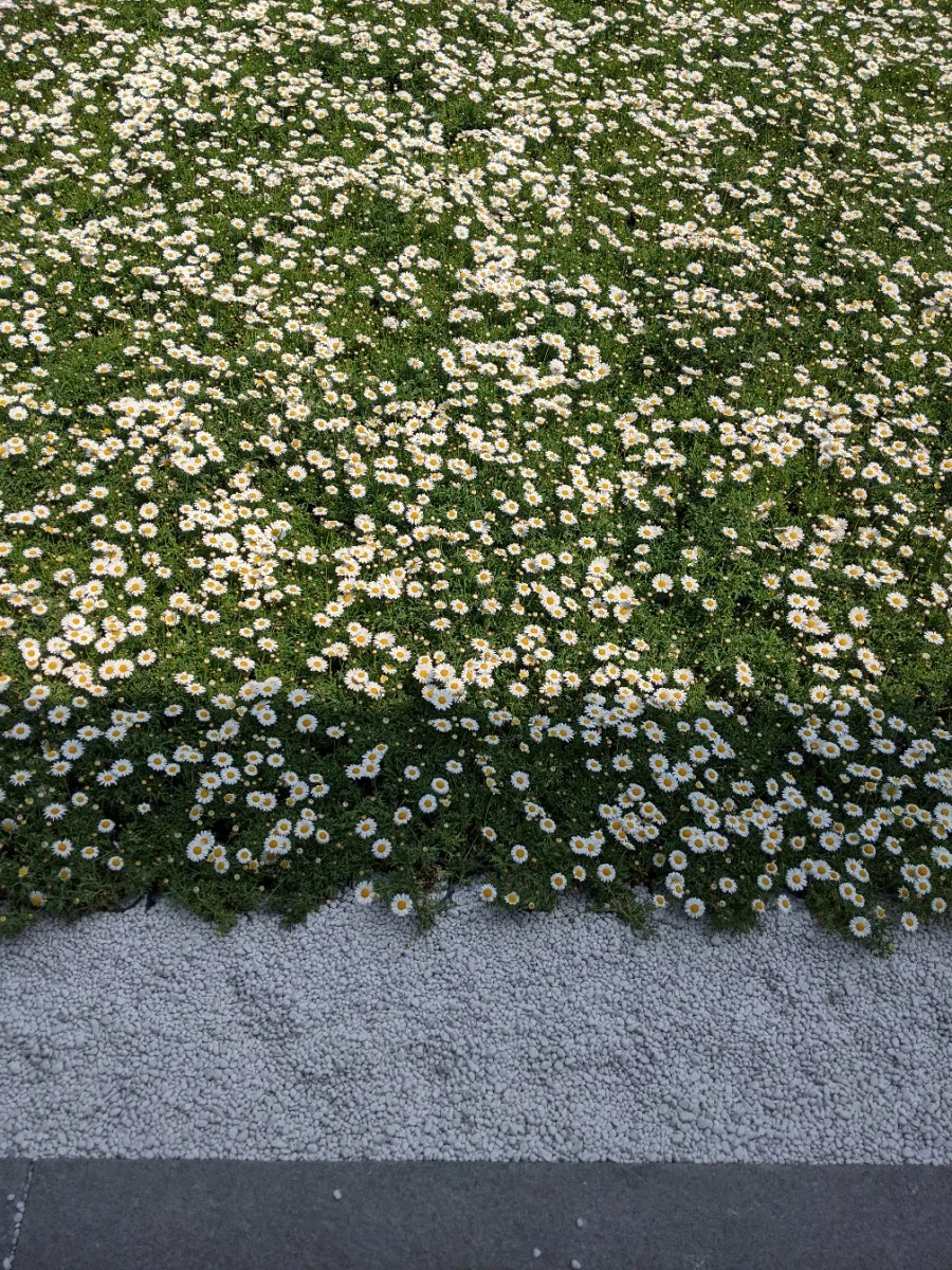 The flower garden in the center was really bright and pretty.
