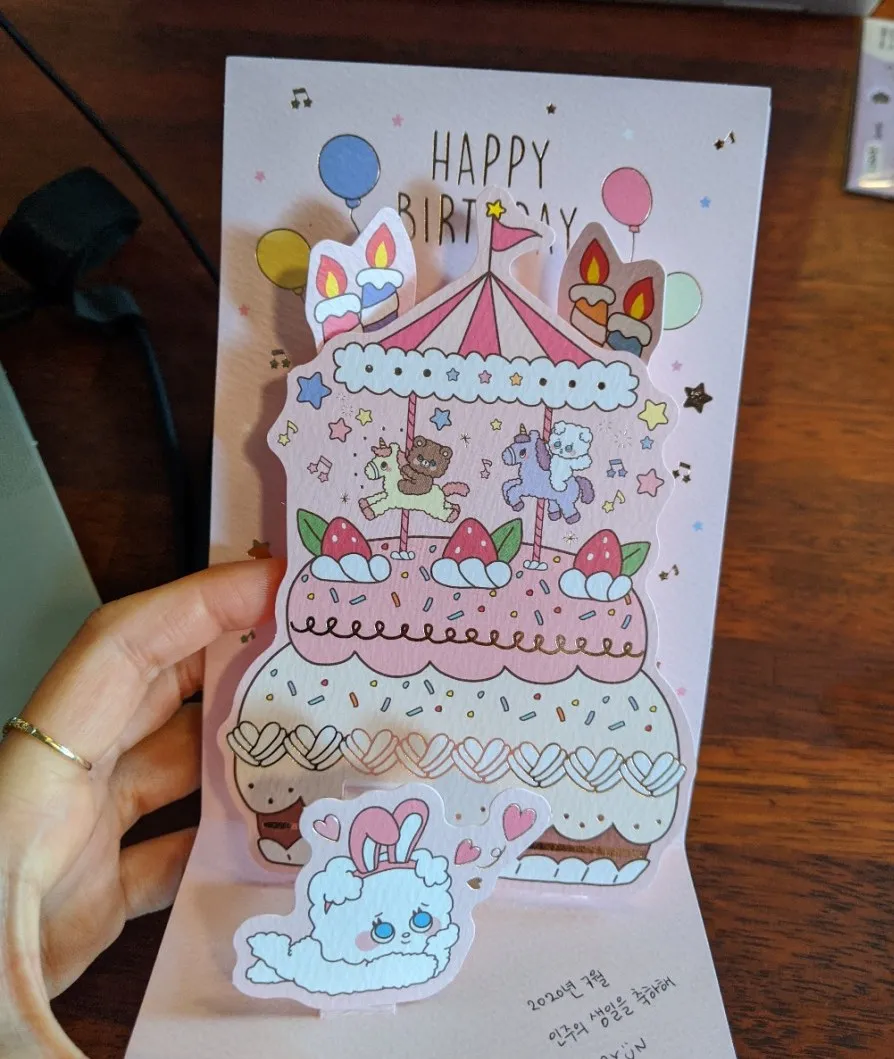 On a work-from-home day, Nini came over and we worked together. An early birthday present and a pretty birthday card.