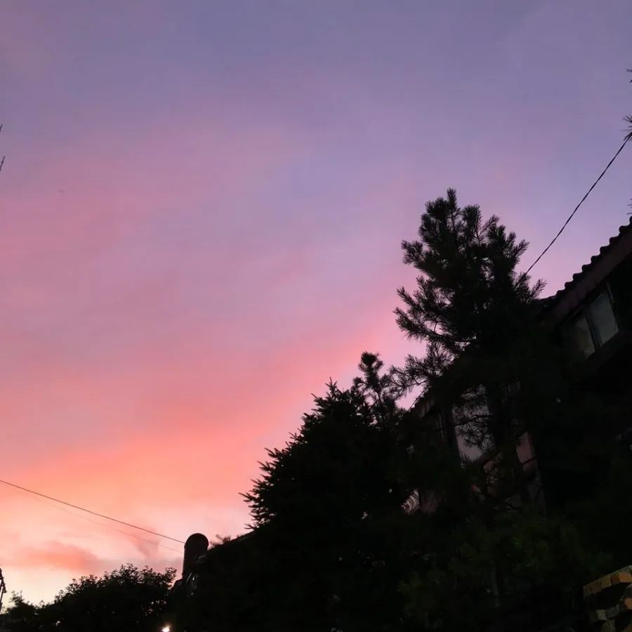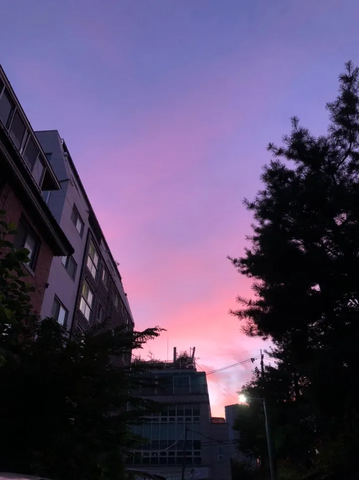 The beautiful sky Minjeong sent me. My favorite pink-purple sky.