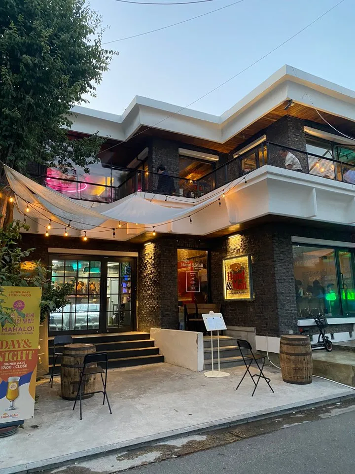A fun gathering whenever we meet, we met up after a long time at Hand and Malt Brew Lab in Yongsan. The atmosphere was great, and the coconut-flavored beer was the best!!!