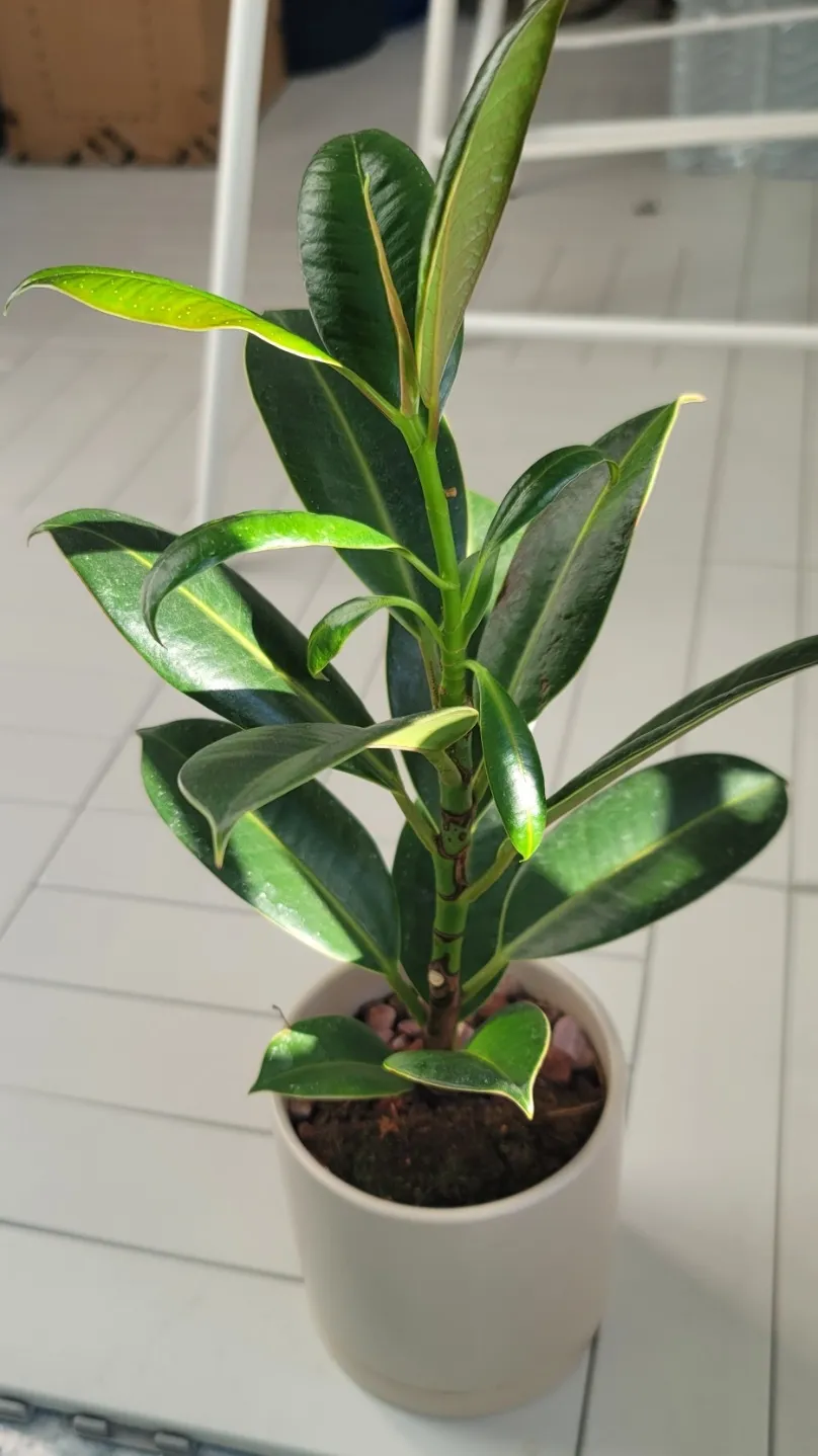 A rubber tree was given as a housewarming gift to a friend and his wife.