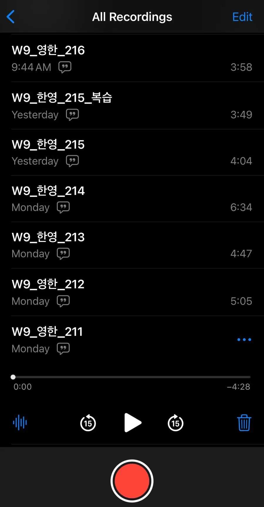 Although I couldn’t listen to all the recordings, they were a great help in understanding how long my interpretations take. I faced the reality that my Korean-to-English interpretation still needs more training to meet the graduation exam’s 4-minute 30-second cutoff, and I became acutely aware that I need to move beyond vague anxiety and focus on interpreting strategically and efficiently.